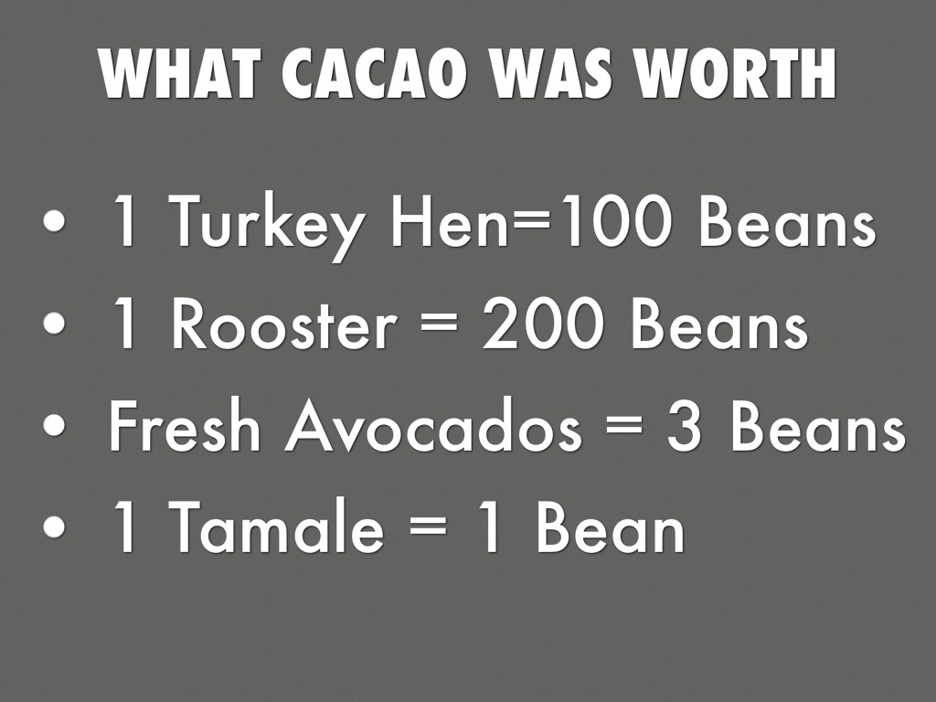 Most transactions between and among the Pochteca and the Maya were down with Cacao Beans.
