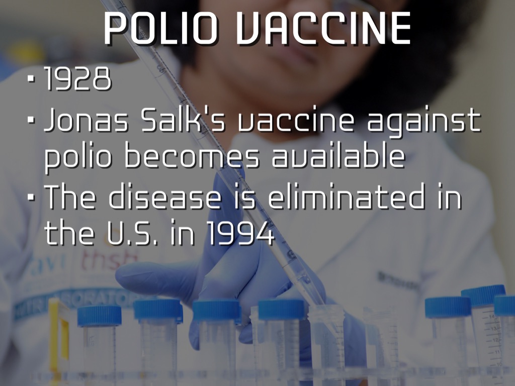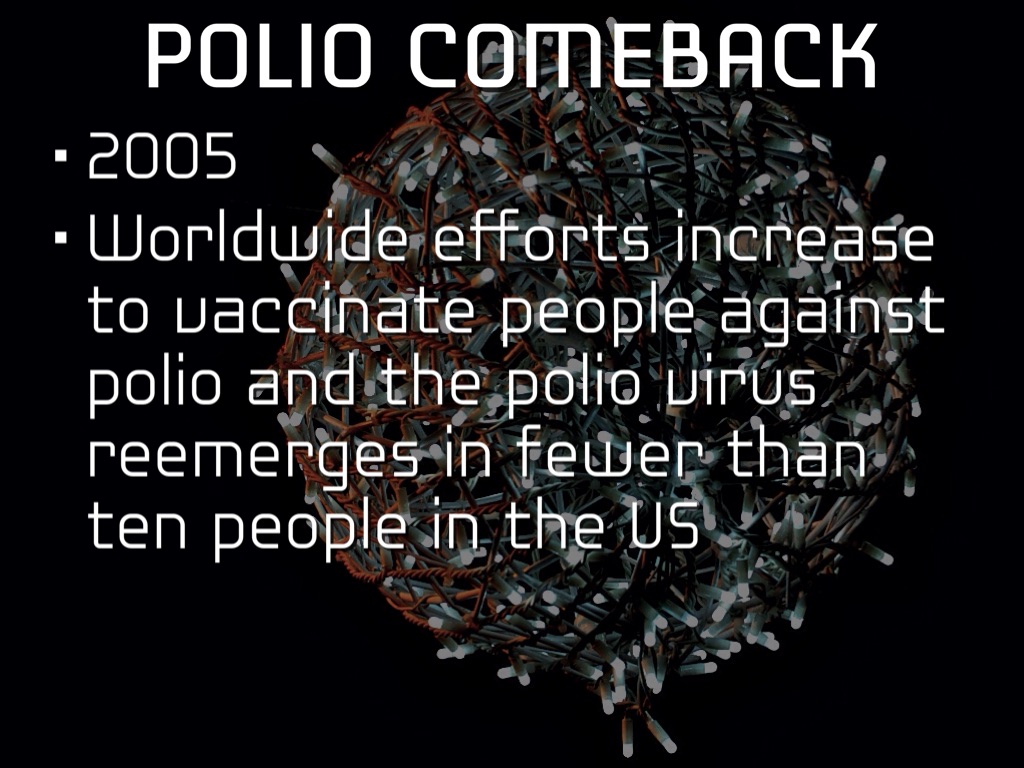 Worldwide efforts increase to vaccinate people against polio and the polio virus reemerges in fewer than ten people in the US