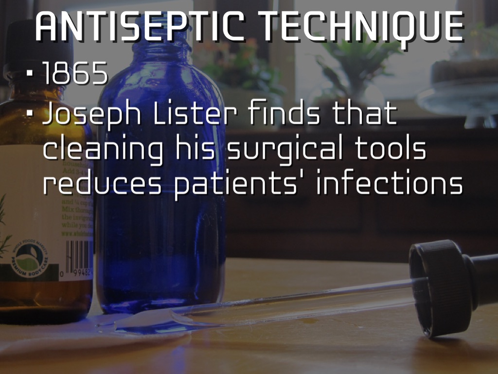 Joseph Lister finds that cleaning his surgical tools reduces patients' infections
