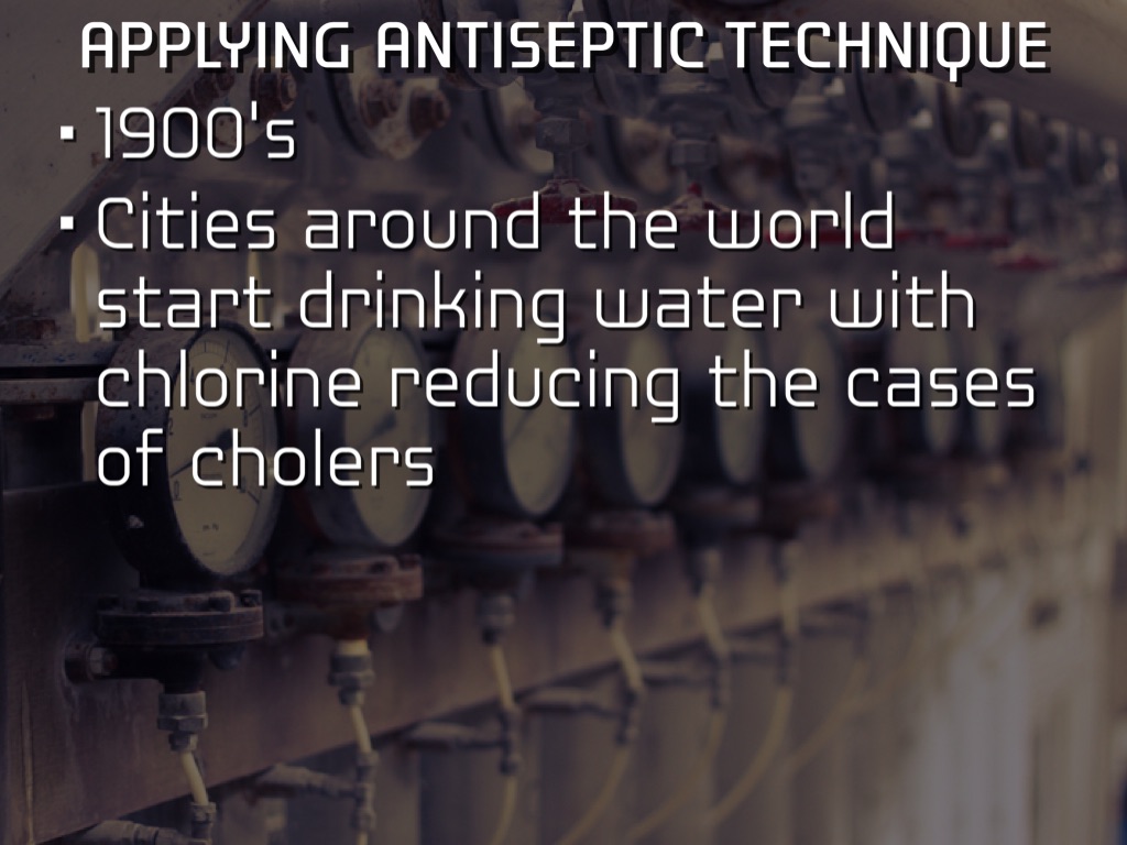 Cities around the world start drinking water with chlorine reducing the cases of cholers