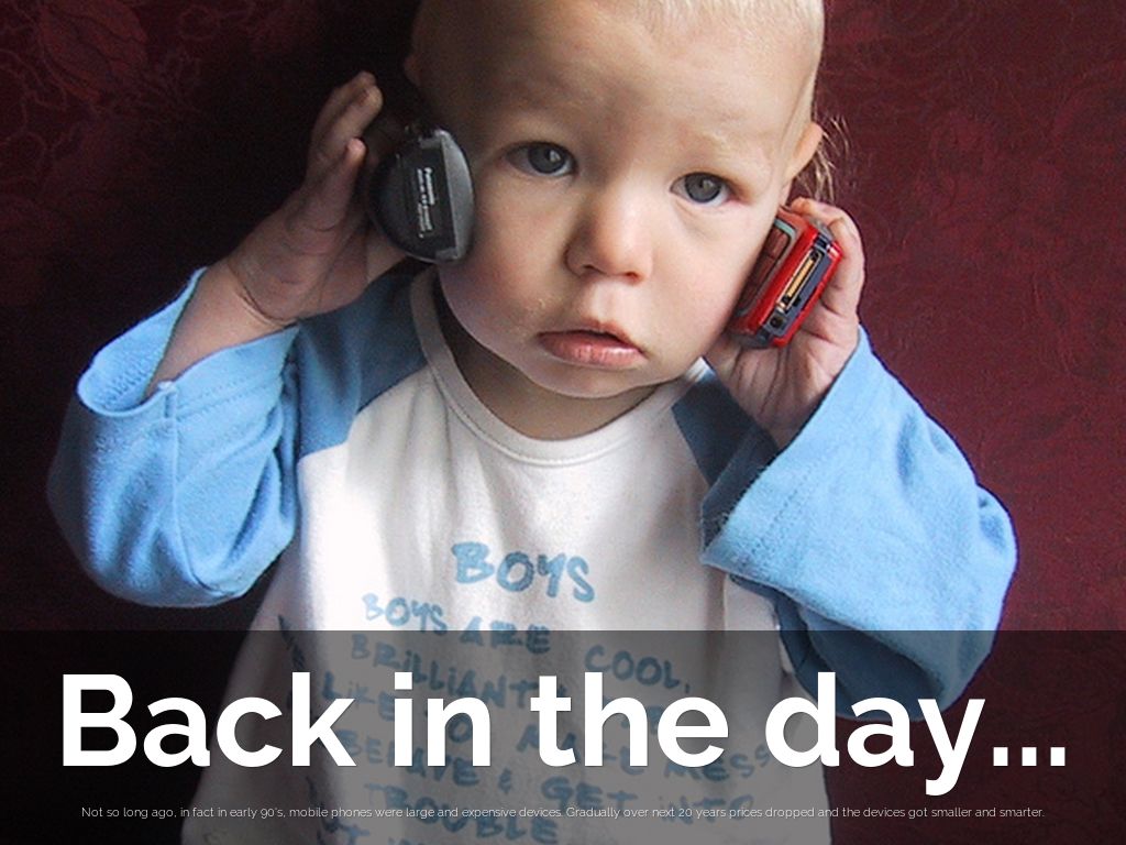 Not so long ago, in fact in early 90's, mobile phones were large and expensive devices. Gradually over next 20 years prices dropped and the devices got smaller and smarter.