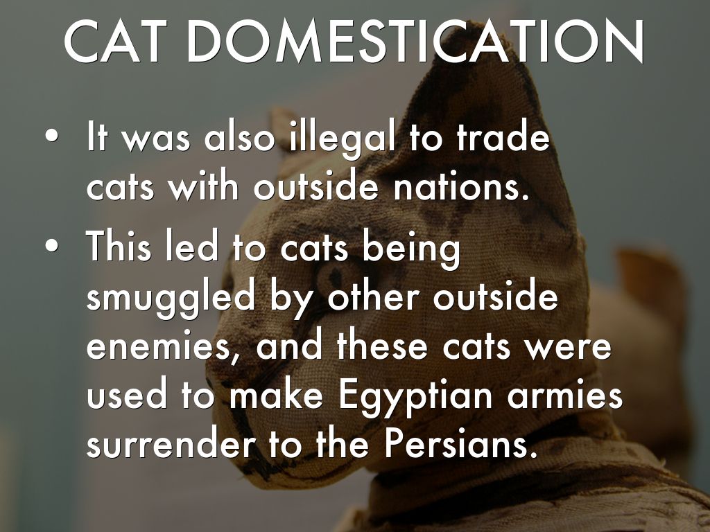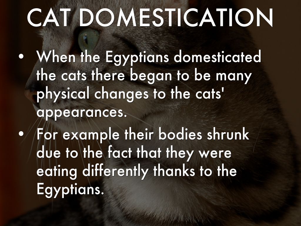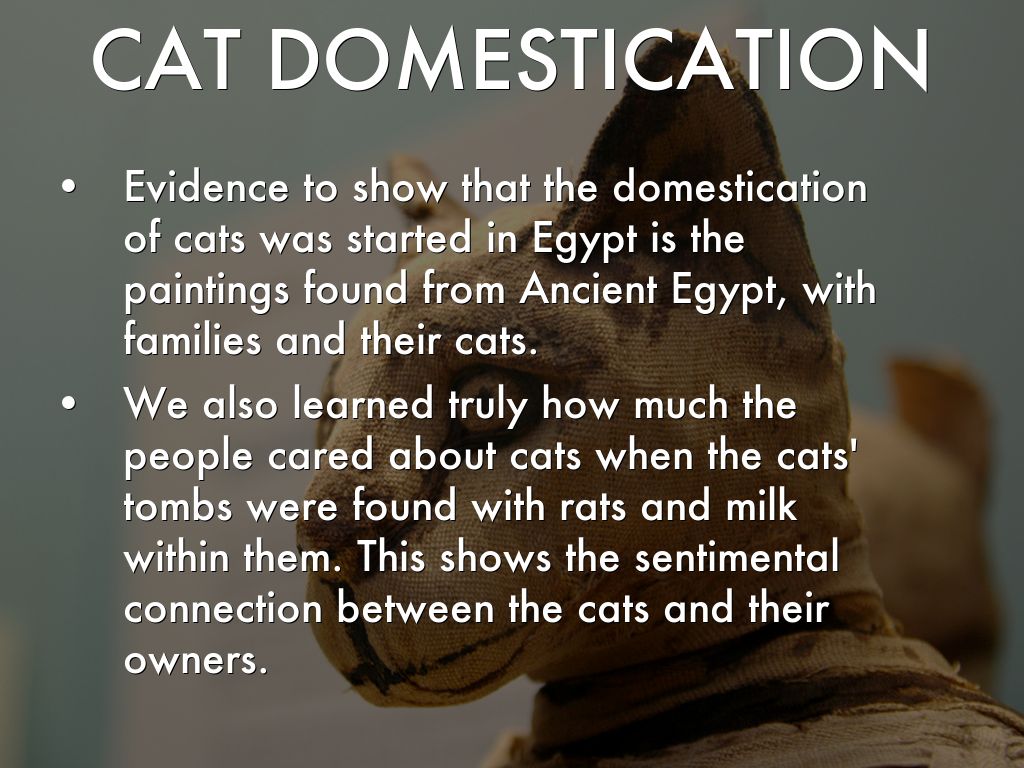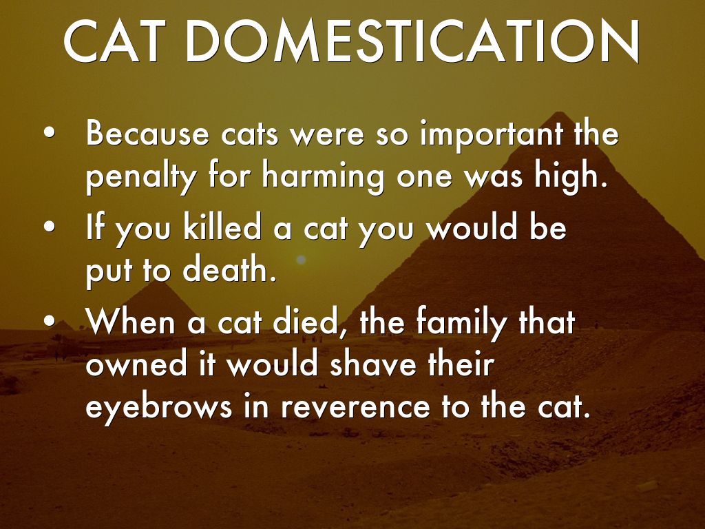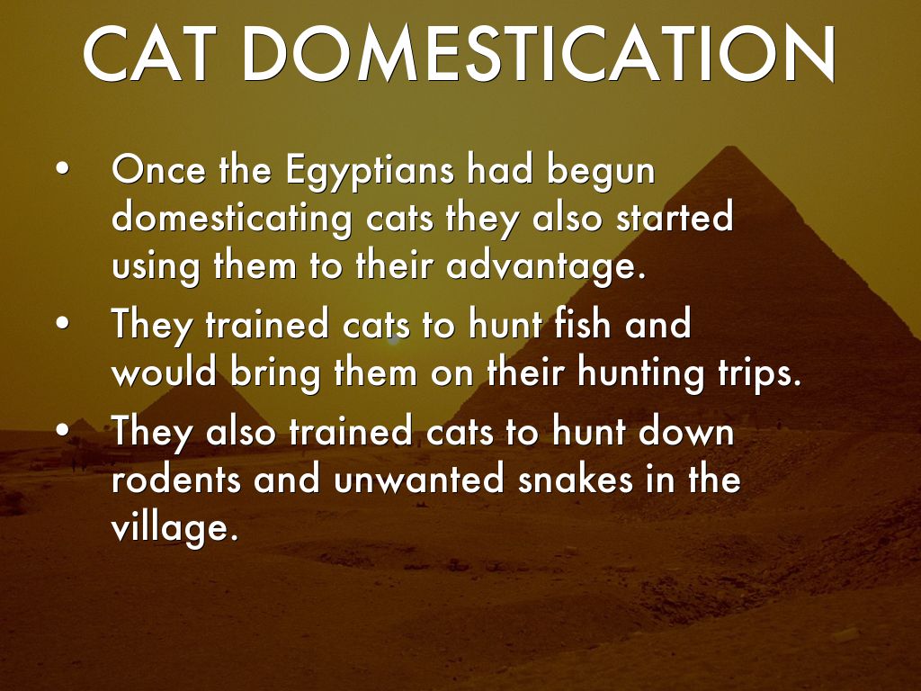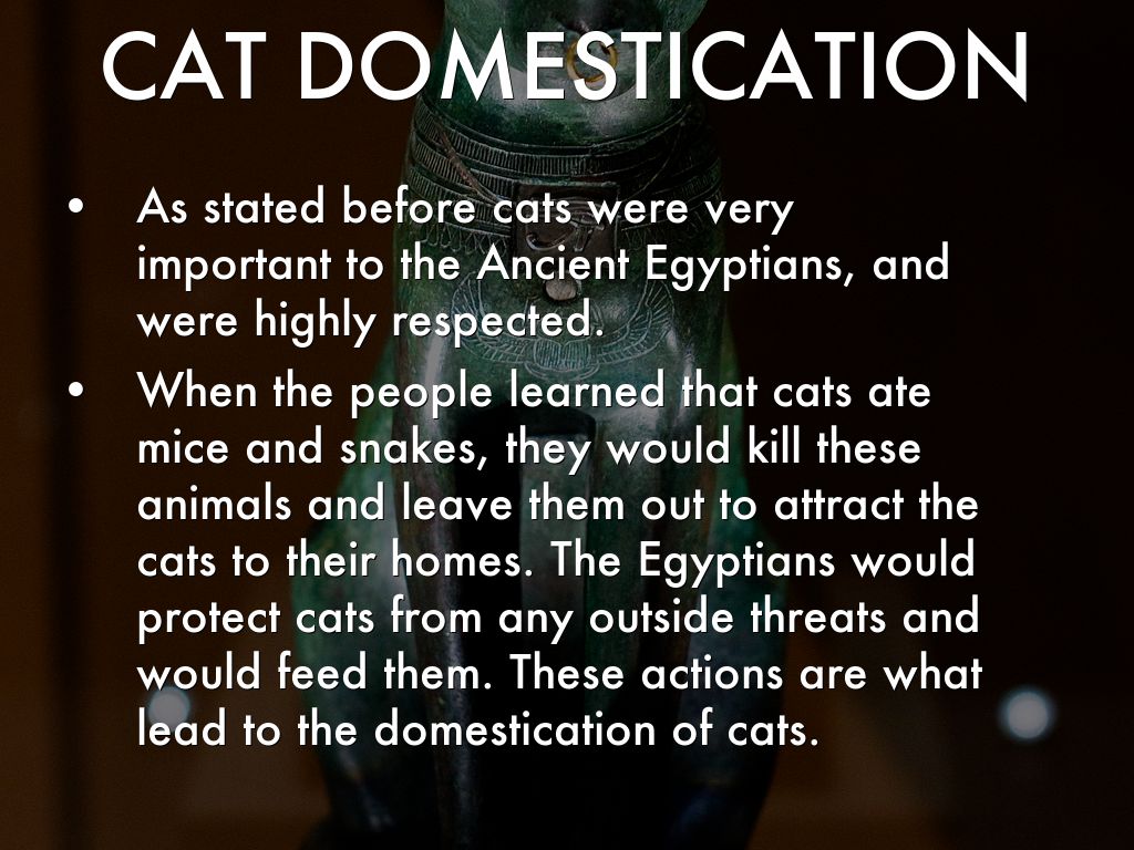 When the people learned that cats ate mice and snakes, they would kill these animals and leave them out to attract the cats to their homes. The Egyptians would protect cats from any outside threats and would feed them. These actions are what lead to the domestication of cats.