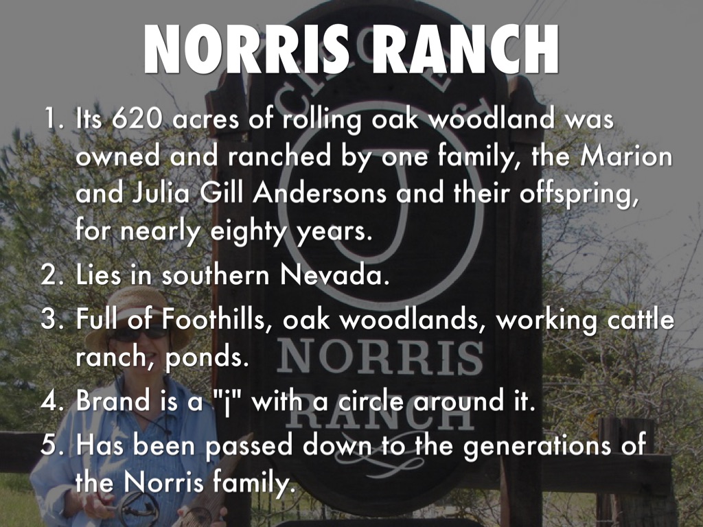 Its 620 acres of rolling oak woodland was owned and ranched by one family, the Marion and Julia Gill Andersons and their offspring, for nearly eighty years.