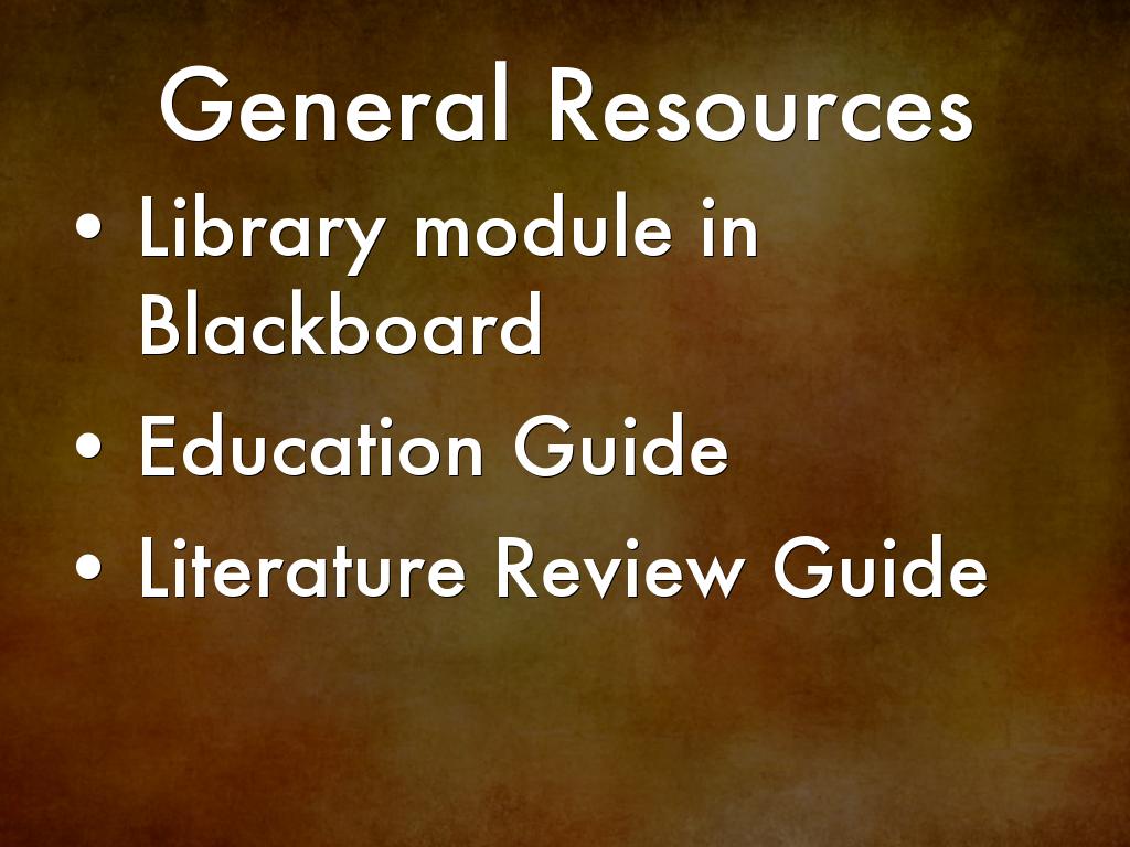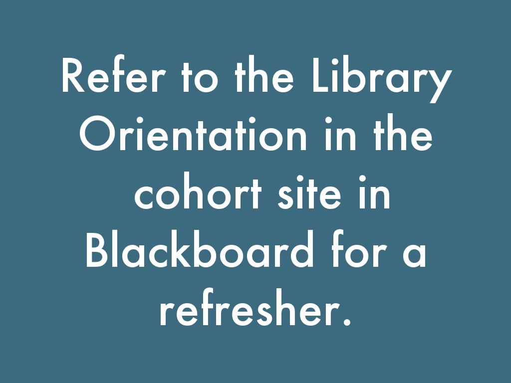 Refer to the Library Orientation in the cohort site in Blackboard for a refresher.