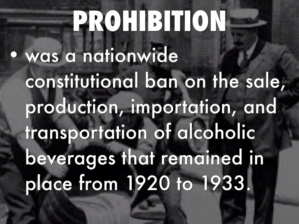 was a nationwide constitutional ban on the sale, production, importation, and transportation of alcoholic beverages that remained in place from 1920 to 1933.
