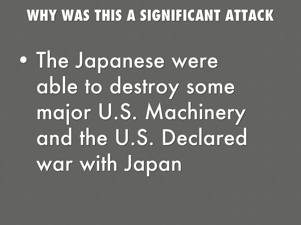 • The Japanese were able to destroy some major U.S. Machinery and the U.S. Declared war with Japan