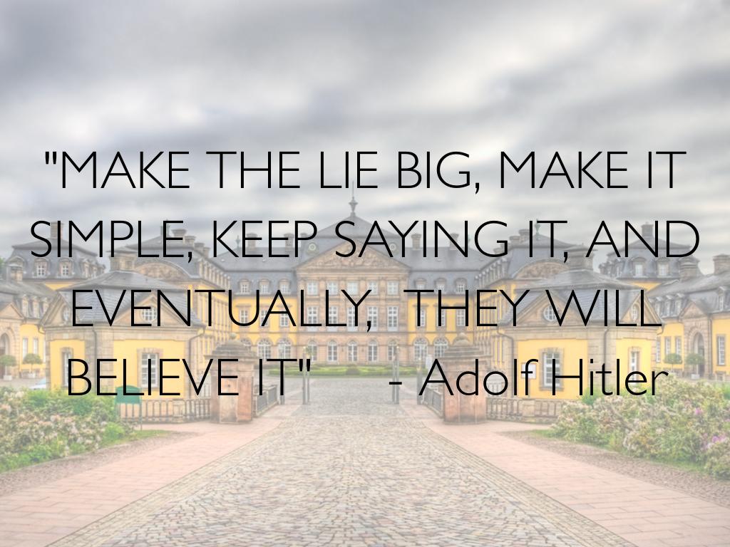 "MAKE THE LIE BIG, MAKE IT SIMPLE, KEEP SAYING IT, AND EVENTUALLY, THEY WILL BELIEVE IT" - Adolf Hitler