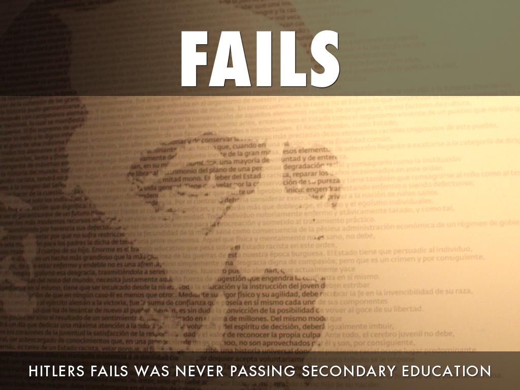 HITLERS FAILS WAS NEVER PASSING SECONDARY EDUCATION