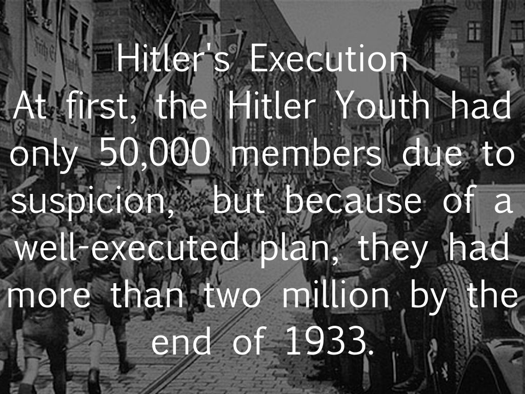 At first, the Hitler Youth had only 50,000 members due to suspicion, but because of a well-executed plan, they had more than two million by the end of 1933.