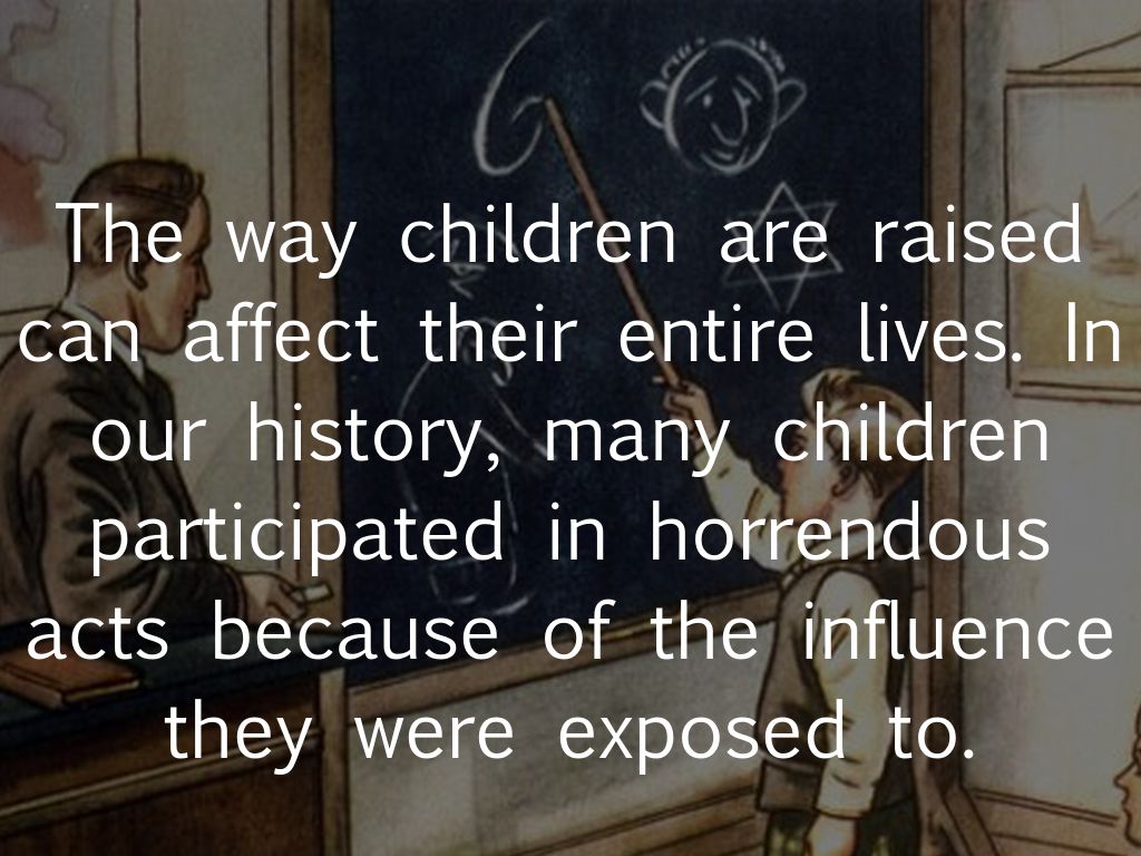The way children are raised can affect their entire lives. In our history, many children participated in horrendous acts because of the influence they were exposed to.