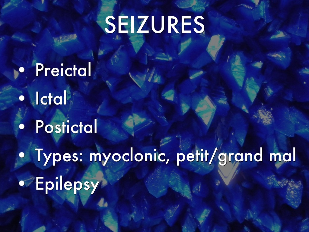 Types: myoclonic, petit/grand mal
