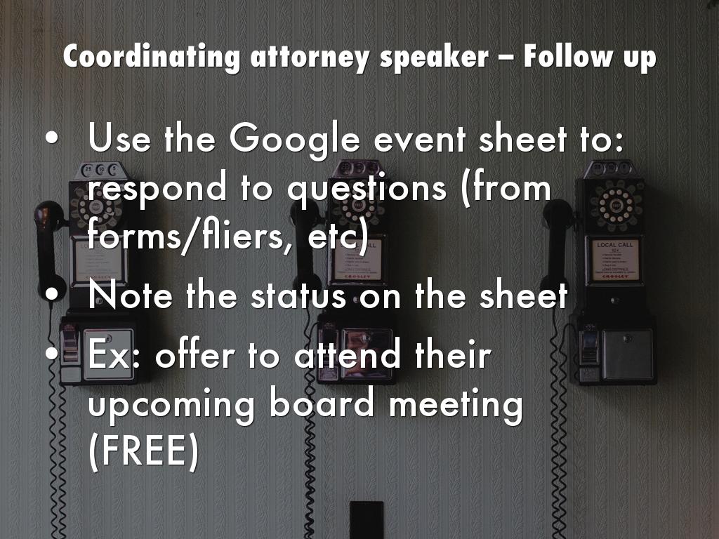 Use the Google event sheet to: respond to questions (from forms/fliers, etc)