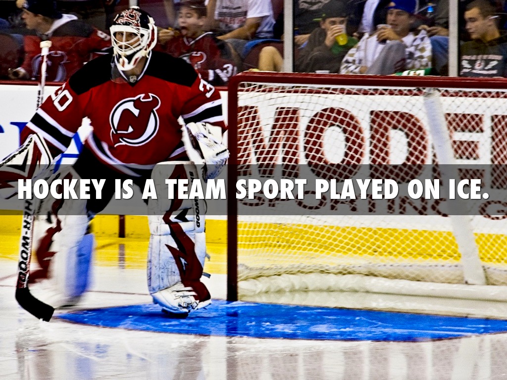 HOCKEY IS A TEAM SPORT PLAYED ON ICE.