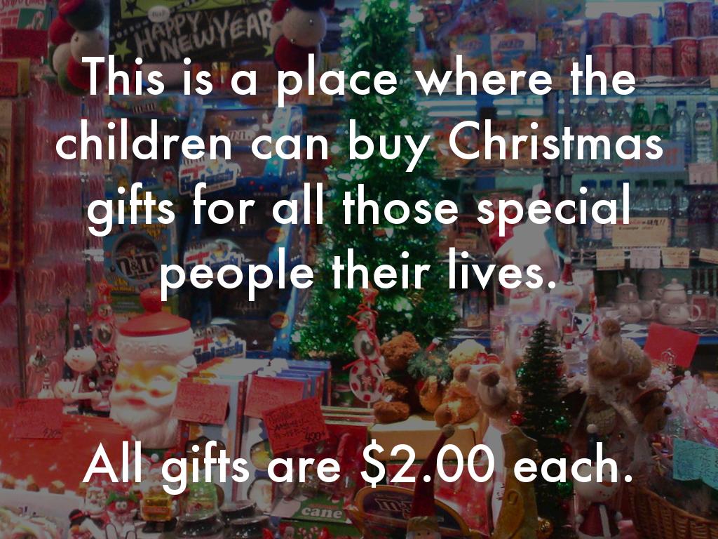 This is a place where the children can buy Christmas gifts for all those special people their lives.