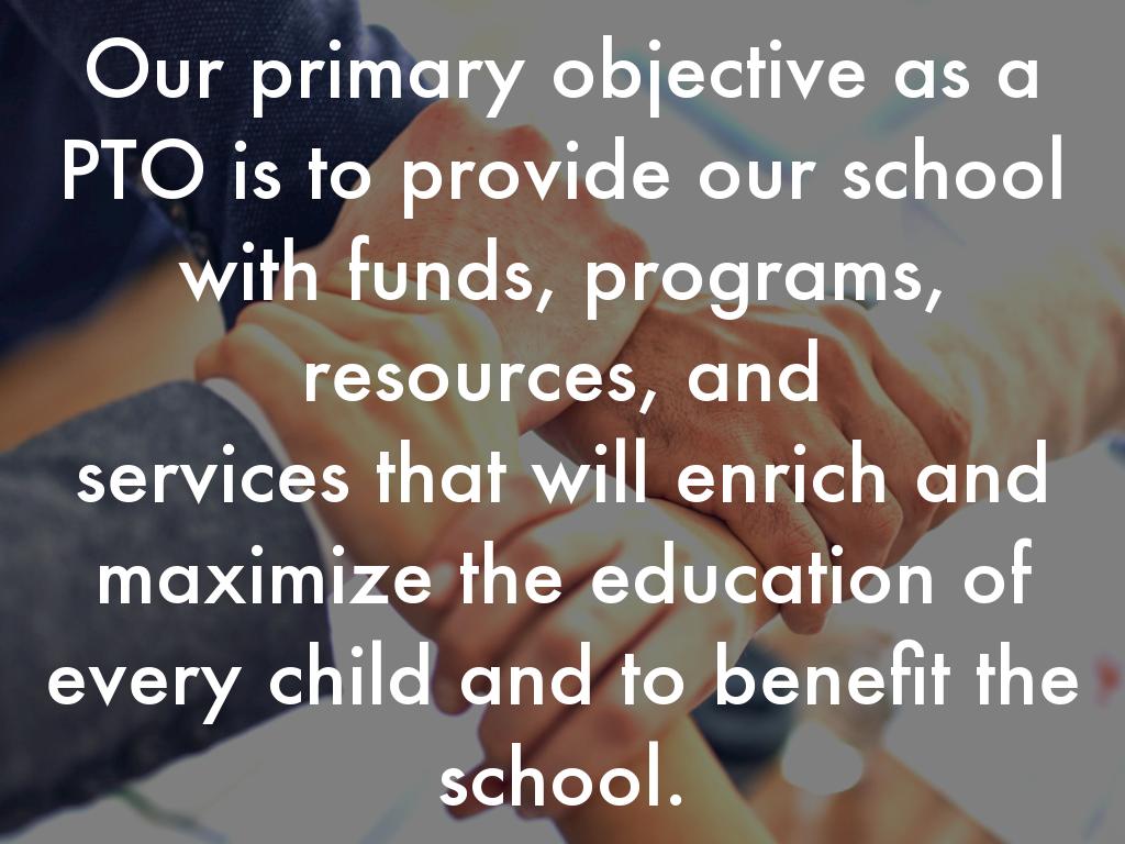 Our primary objective as a PTO is to provide our school with funds, programs, resources, and