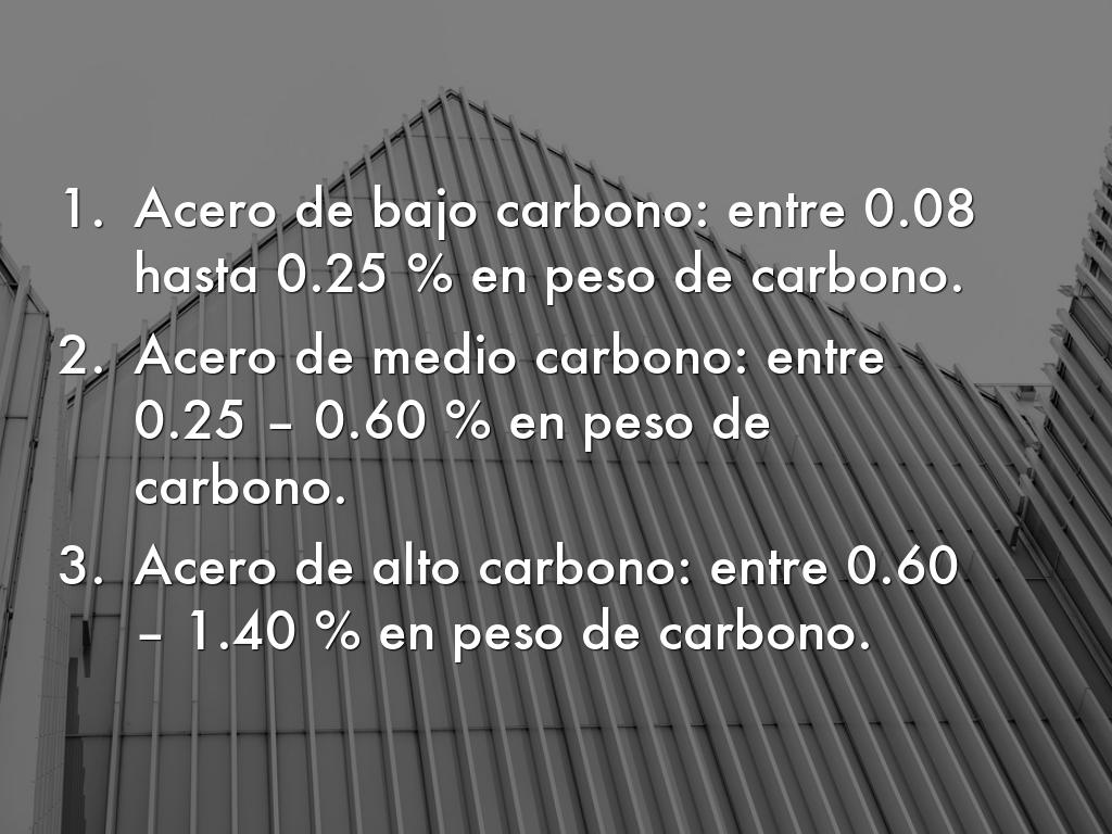 • Acero de bajo carbono: entre 0.08 hasta 0.25 % en peso de carbono.