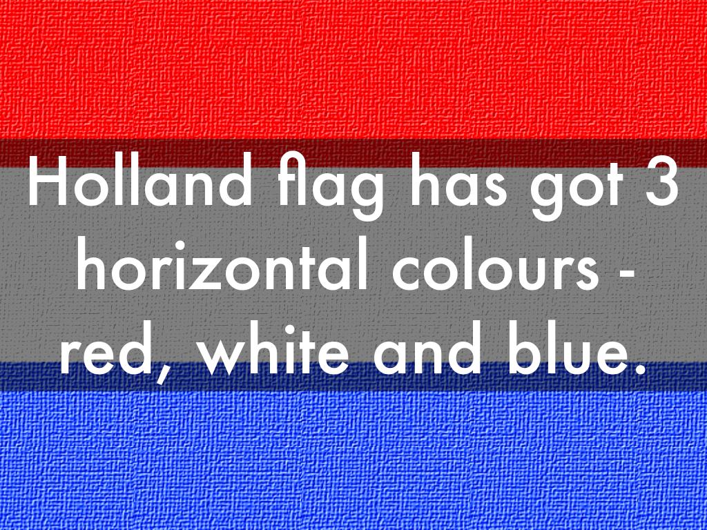 Holland flag has got 3 horizontal colours - red, white and blue.
