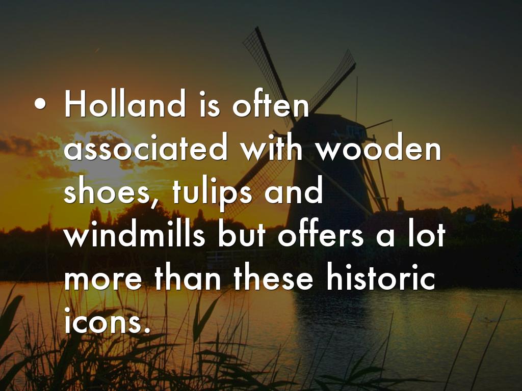 Holland is often associated with wooden shoes, tulips and windmills but offers a lot more than these historic icons.