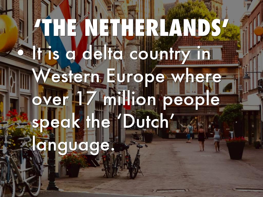 It is a delta country in Western Europe where over 17 million people speak the ‘Dutch’ language.