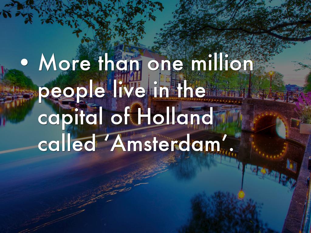 More than one million people live in the capital of Holland called ‘Amsterdam’.