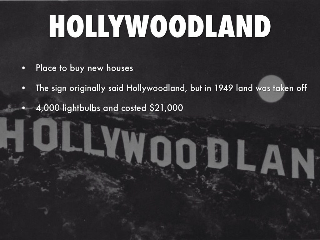 The sign originally said Hollywoodland, but in 1949 land was taken off