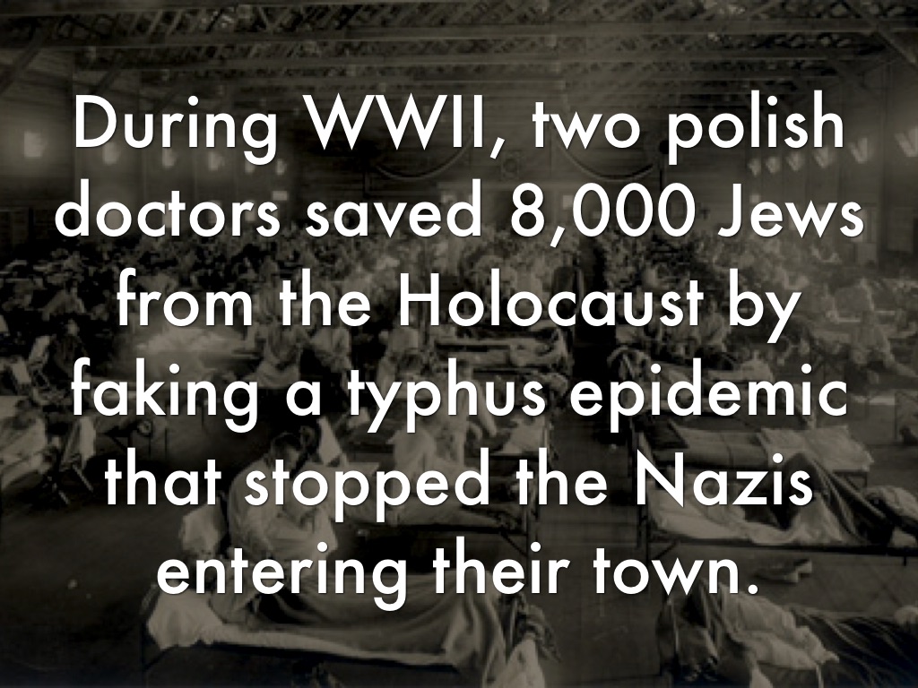 During WWII, two polish doctors saved 8,000 Jews from the Holocaust by faking a typhus epidemic that stopped the Nazis entering their town.