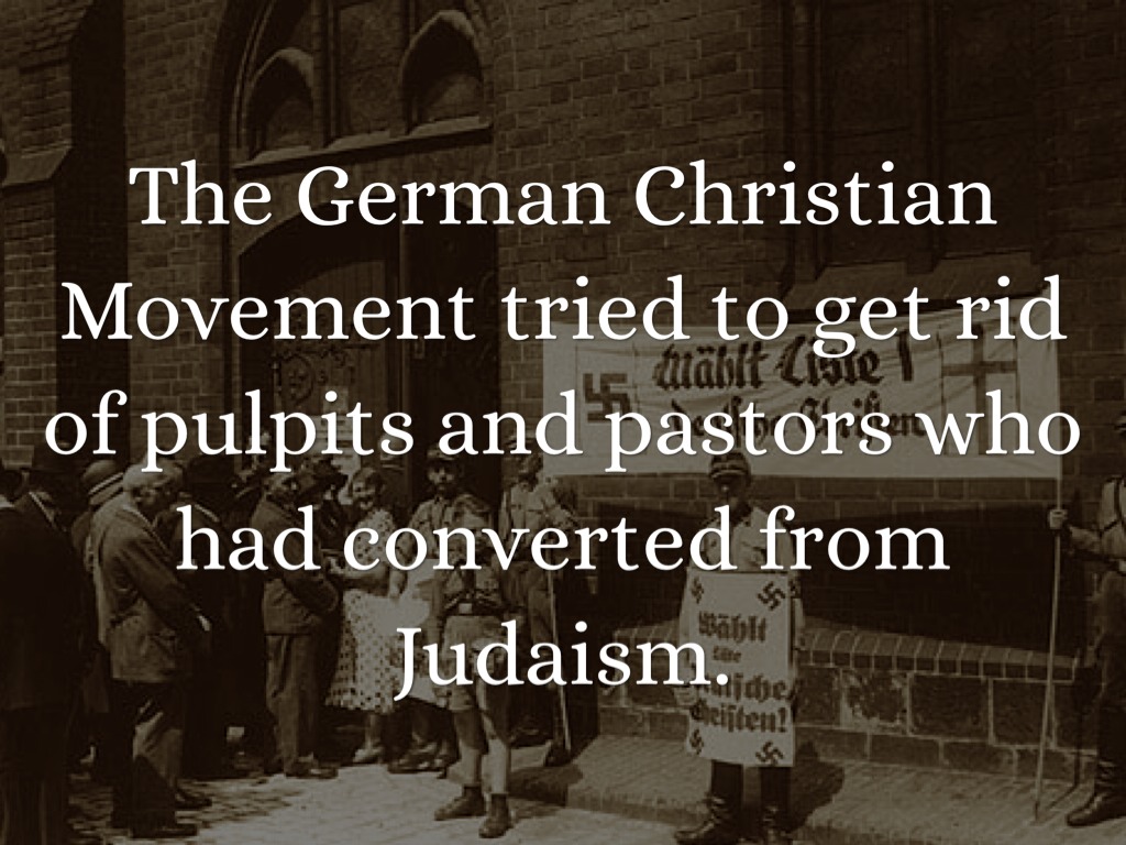 The German Christian Movement tried to get rid of pulpits and pastors who had converted from Judaism.