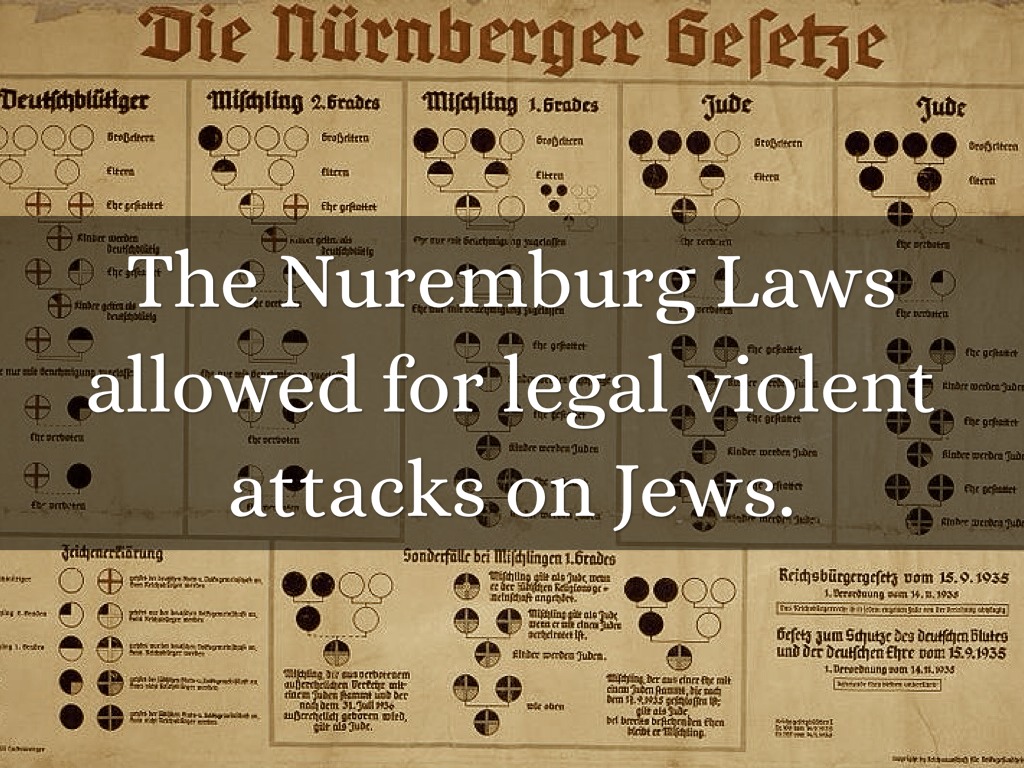 The Nuremburg Laws allowed for legal violent attacks on Jews.