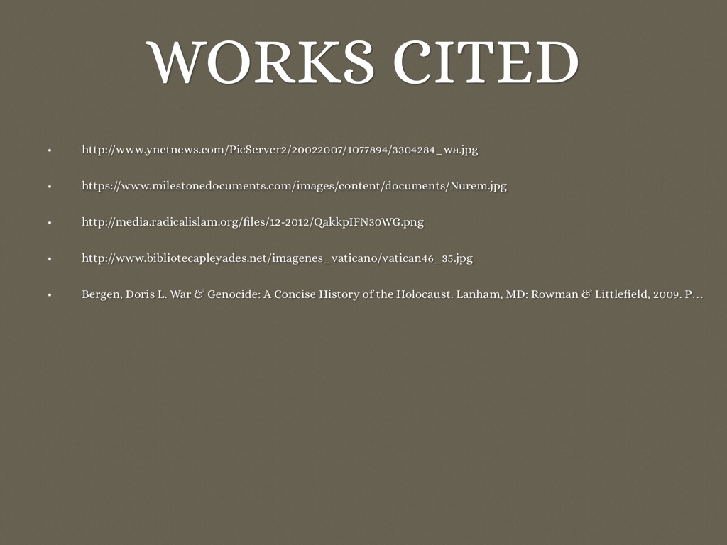 Bergen, Doris L. War & Genocide: A Concise History of the Holocaust. Lanham, MD: Rowman & Littlefield, 2009. Print.