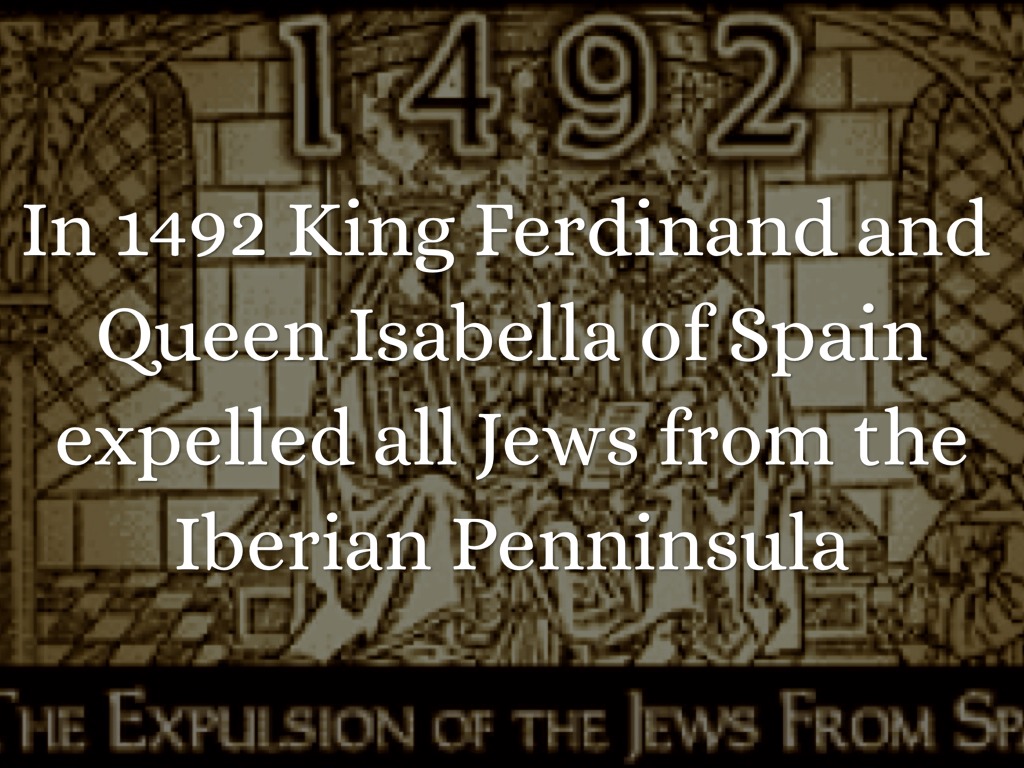 In 1492 King Ferdinand and Queen Isabella of Spain expelled all Jews from the Iberian Penninsula