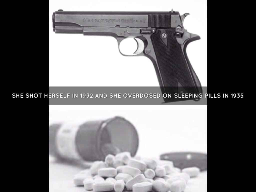 SHE SHOT HERSELF IN 1932 AND SHE OVERDOSED ON SLEEPING PILLS IN 1935