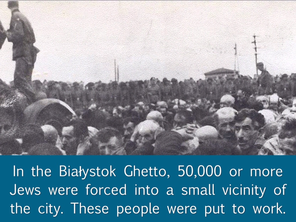 In the Białystok Ghetto, 50,000 or more Jews were forced into a small vicinity of the city. These people were put to work.