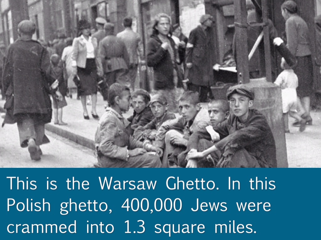 This is the Warsaw Ghetto. In this Polish ghetto, 400,000 Jews were crammed into 1.3 square miles.