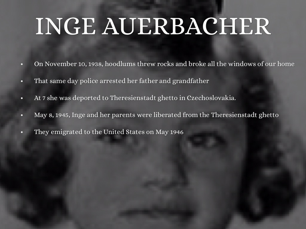 May 8, 1945, Inge and her parents were liberated from the Theresienstadt ghetto