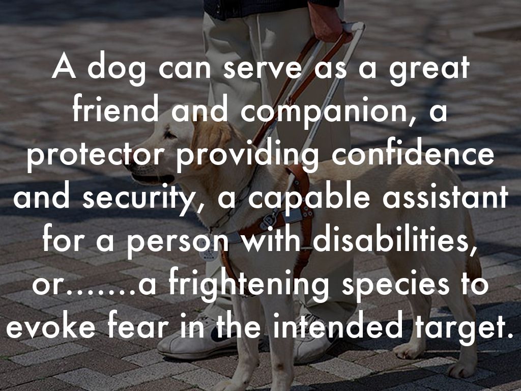 A dog can serve as a great friend and companion, a protector providing confidence and security, a capable assistant for a person with disabilities, or…….a frightening species to evoke fear in the intended target.