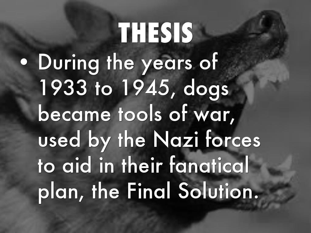 - During the years of 1933 to 1945, dogs became tools of war, used by the Nazi forces to aid in their fanatical plan, the Final Solution.