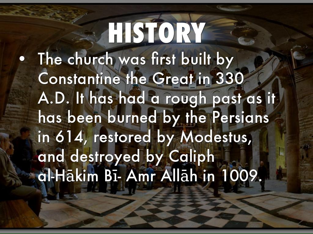The church was first built by Constantine the Great in 330 A.D. It has had a rough past as it has been burned by the Persians in 614, restored by Modestus, and destroyed by Caliph al-Hākim Bī- Amr Allāh in 1009.