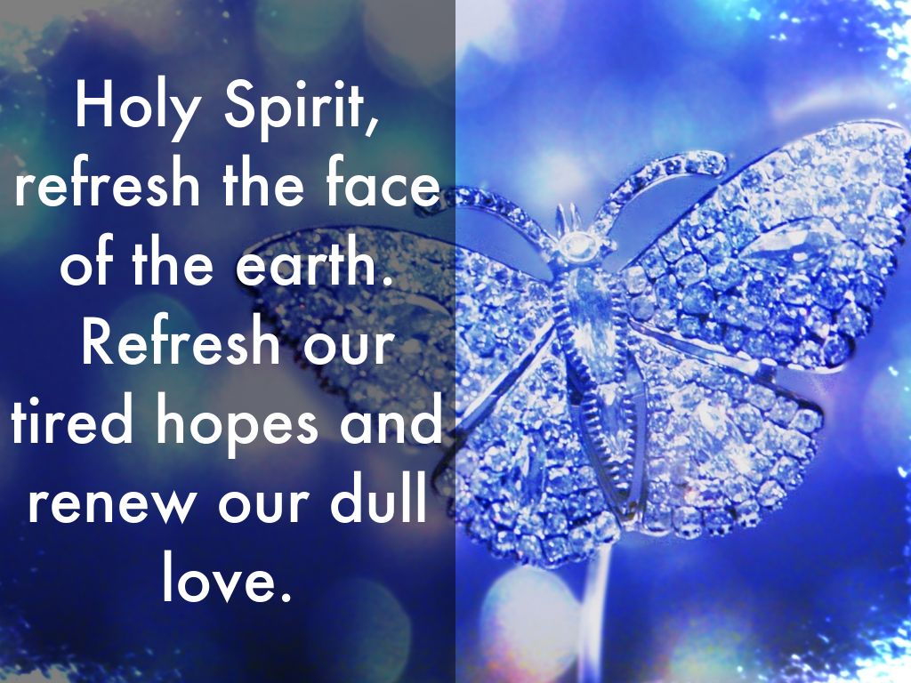Holy Spirit, refresh the face of the earth. Refresh our tired hopes and renew our dull love.