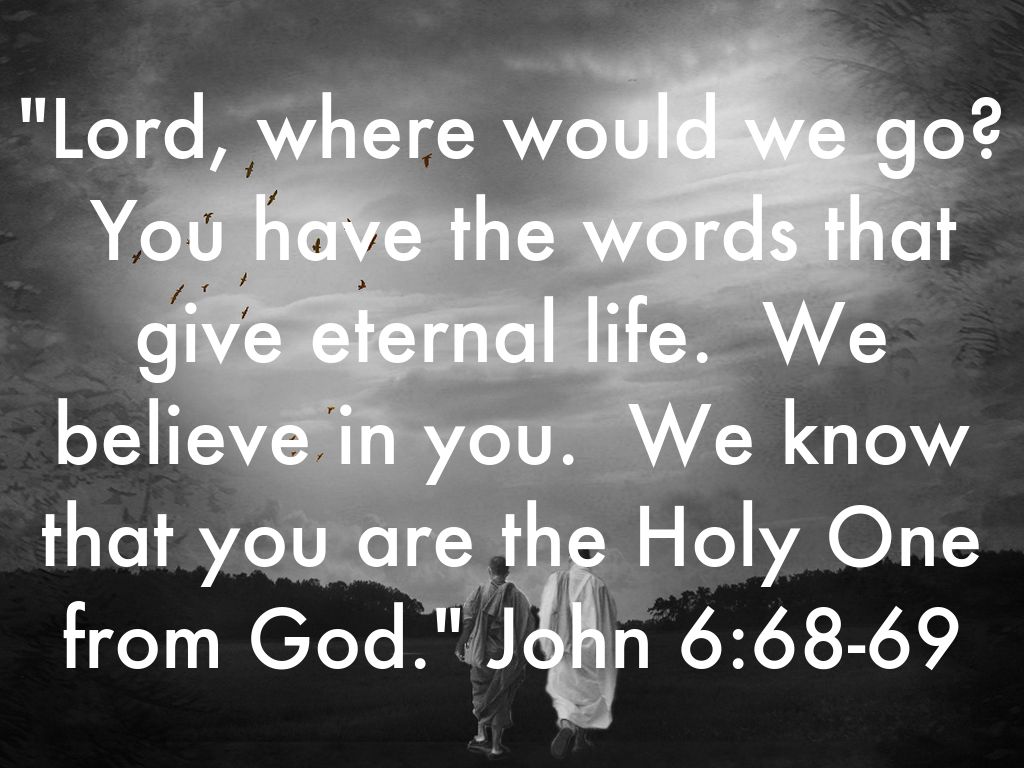 "Lord, where would we go? You have the words that give eternal life. We believe in you. We know that you are the Holy One from God." John 6:68-69
