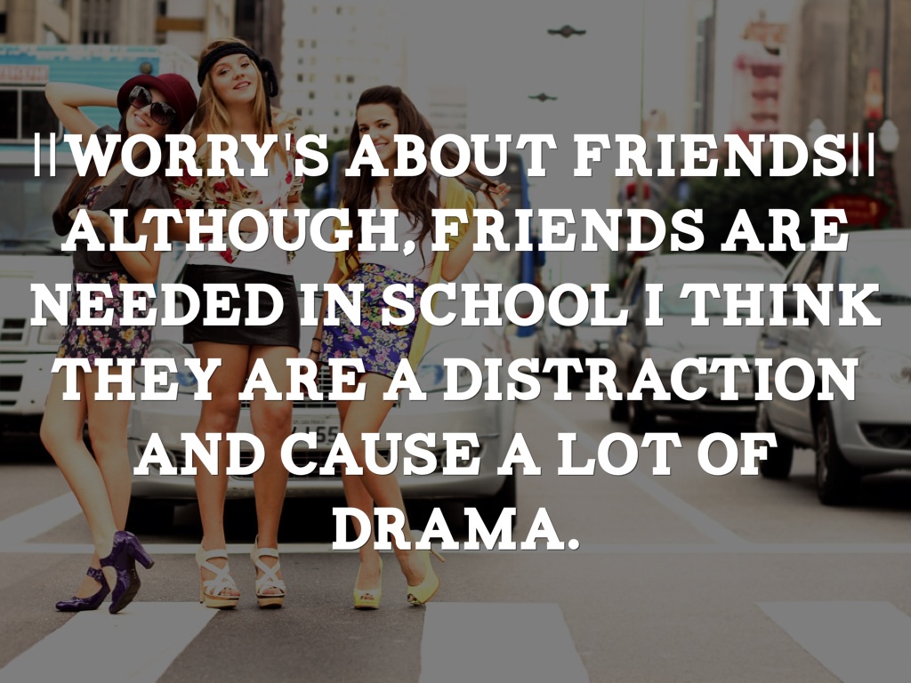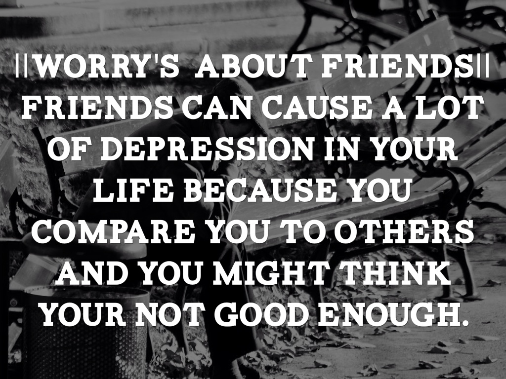 ||Worry's about friends|| Friends can cause a lot of depression in your life because you compare you to others and you might think your not good enough.