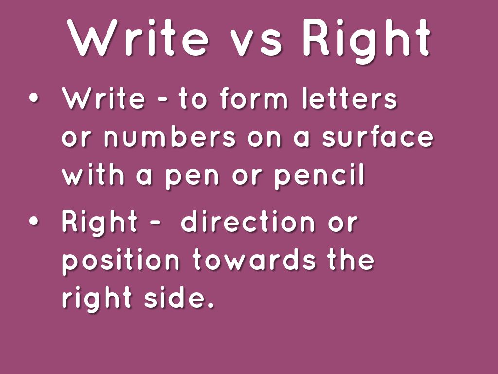 - Write - to form letters or numbers on a surface with a pen or pencil