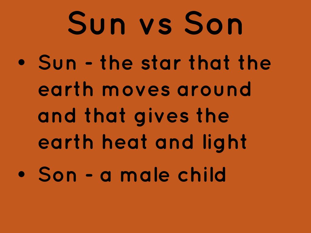 - Sun - the star that the earth moves around and that gives the earth heat and light