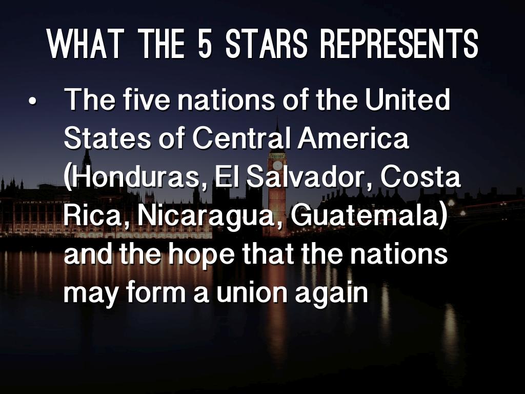 The five nations of the United States of Central America (Honduras, El Salvador, Costa Rica, Nicaragua, Guatemala) and the hope that the nations may form a union again