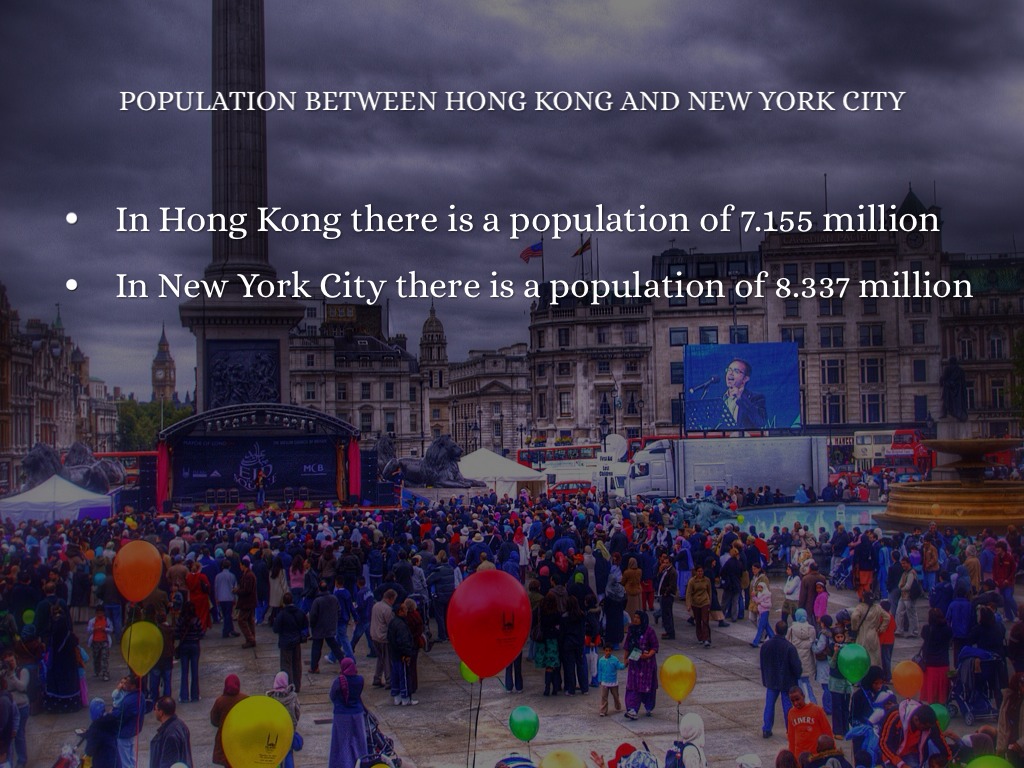 POPULATION BETWEEN HONG KONG AND NEW YORK CITY