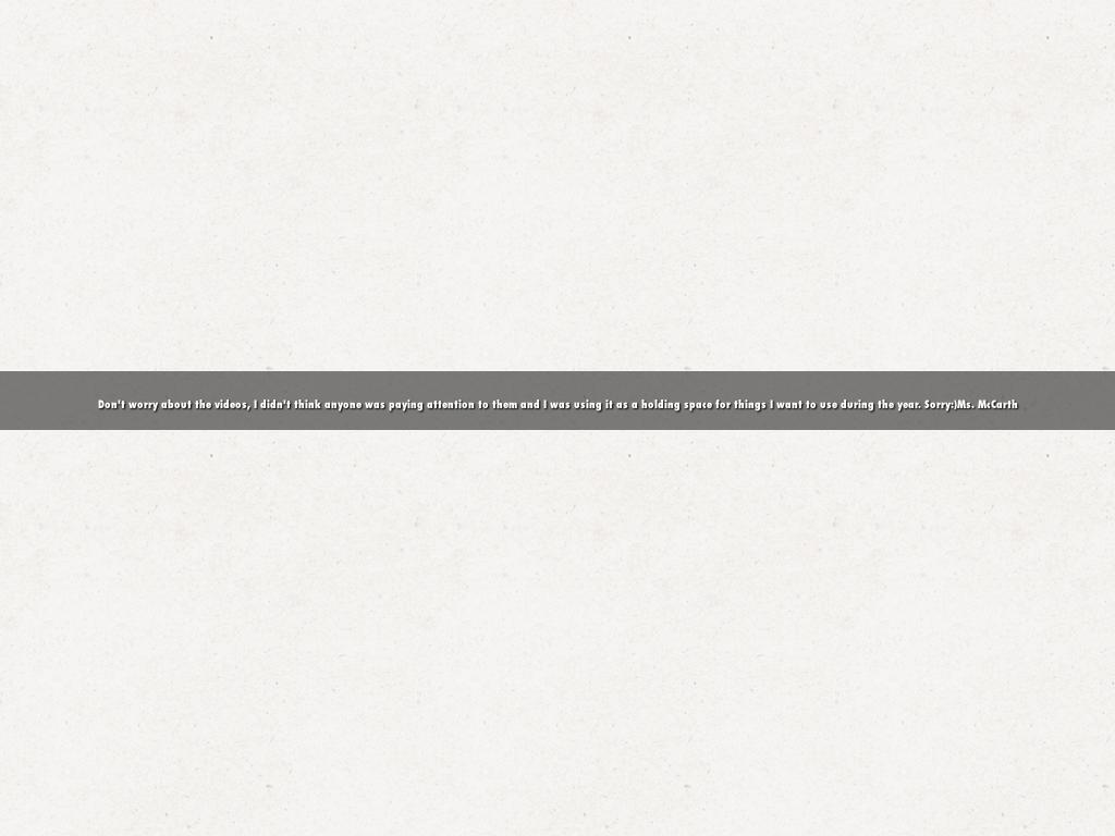 Don't worry about the videos, I didn't think anyone was paying attention to them and I was using it as a holding space for things I want to use during the year. Sorry:)Ms. McCarth