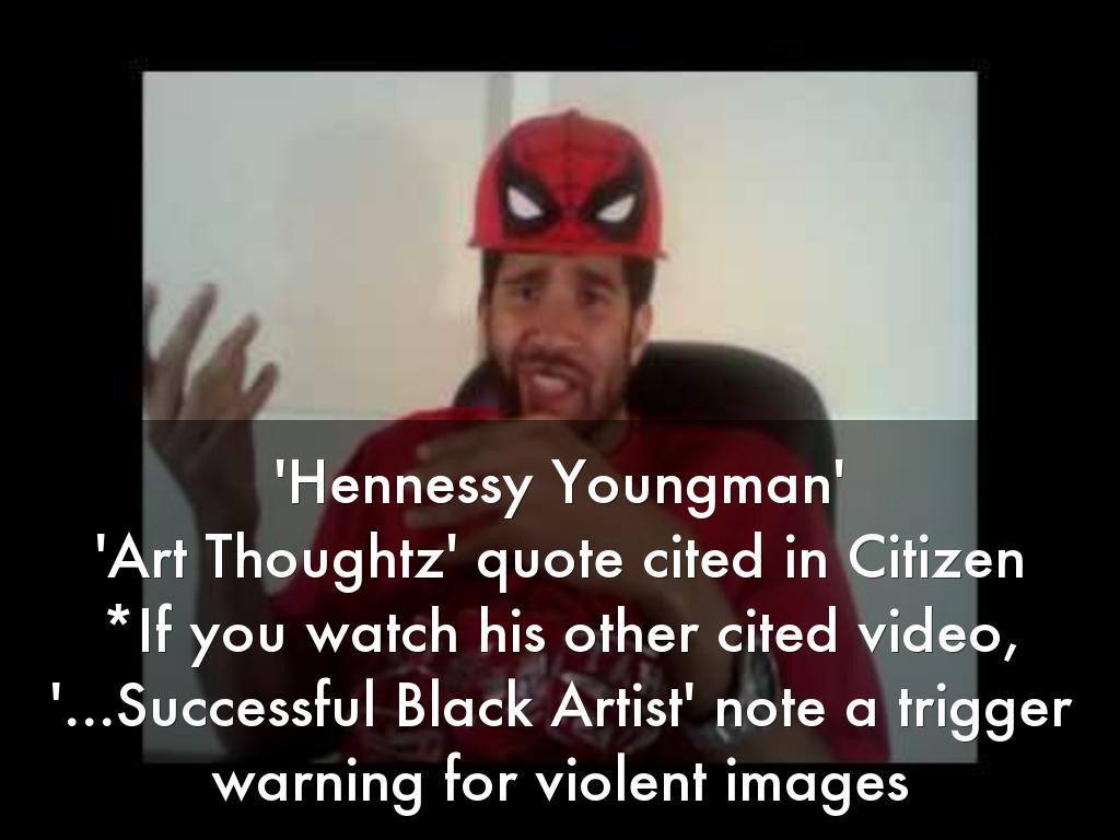 'Hennessy Youngman' 'Art Thoughtz' quote cited in Citizen *If you watch his other cited video, '...Successful Black Artist' note a trigger warning for violent images