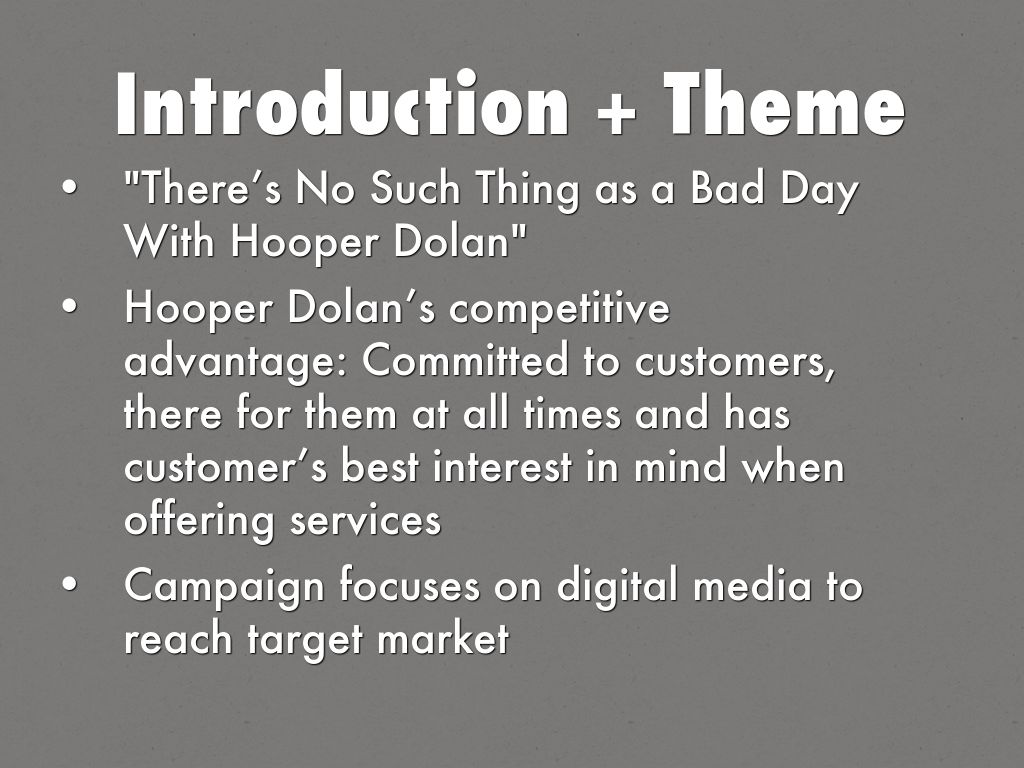 • Hooper Dolan’s competitive advantage: Committed to customers, there for them at all times and has customer’s best interest in mind when offering services
