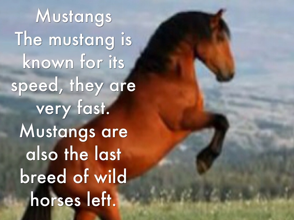 The mustang is known for its speed, they are very fast. Mustangs are also the last breed of wild horses left.