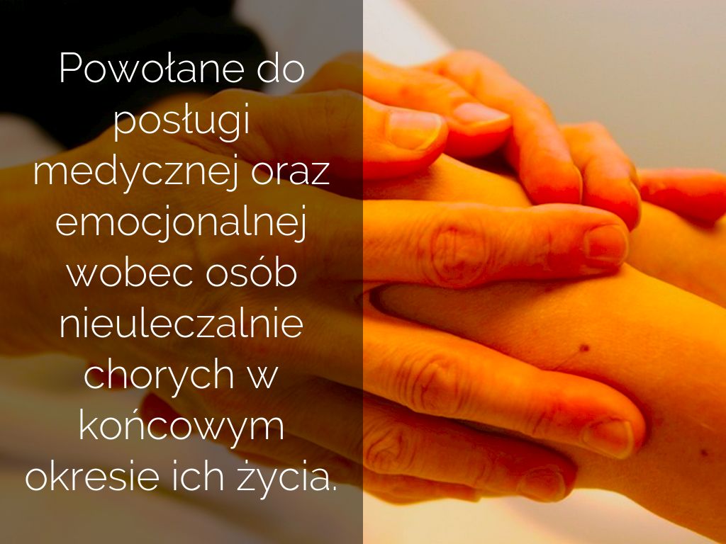 Powołane do posługi medycznej oraz emocjonalnej wobec osób nieuleczalnie chorych w końcowym okresie ich życia.