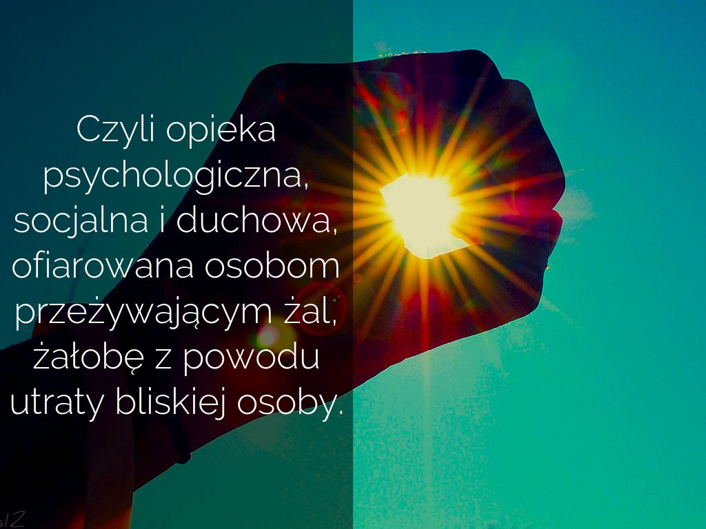 Czyli opieka psychologiczna, socjalna i duchowa, ofiarowana osobom przeżywającym żal,